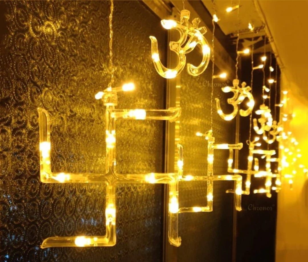 Illuminate your space by using these Beautiful Swastik- Om ....Curtain led lights for your festive decor or party.