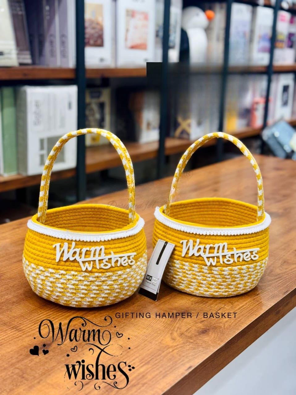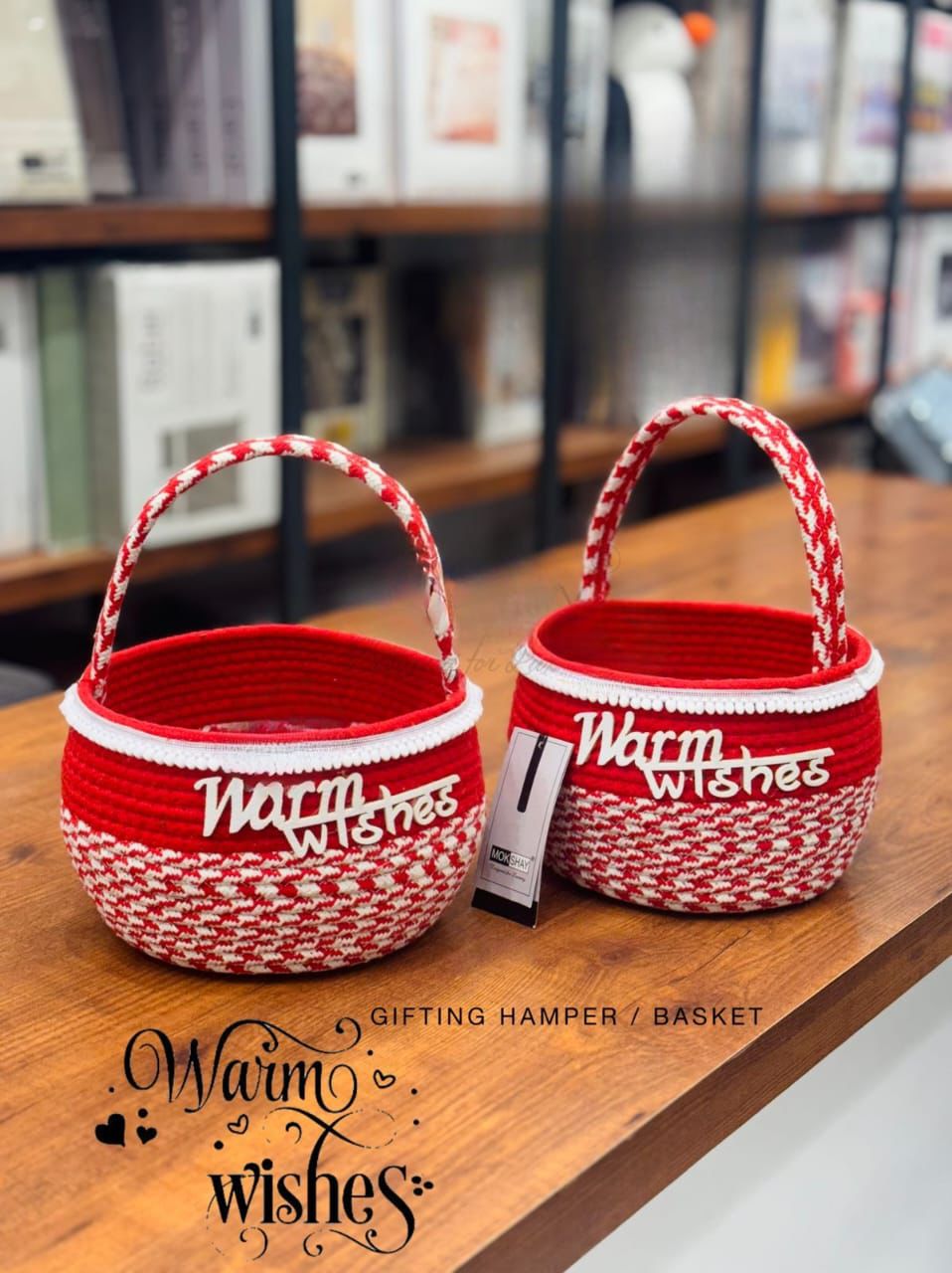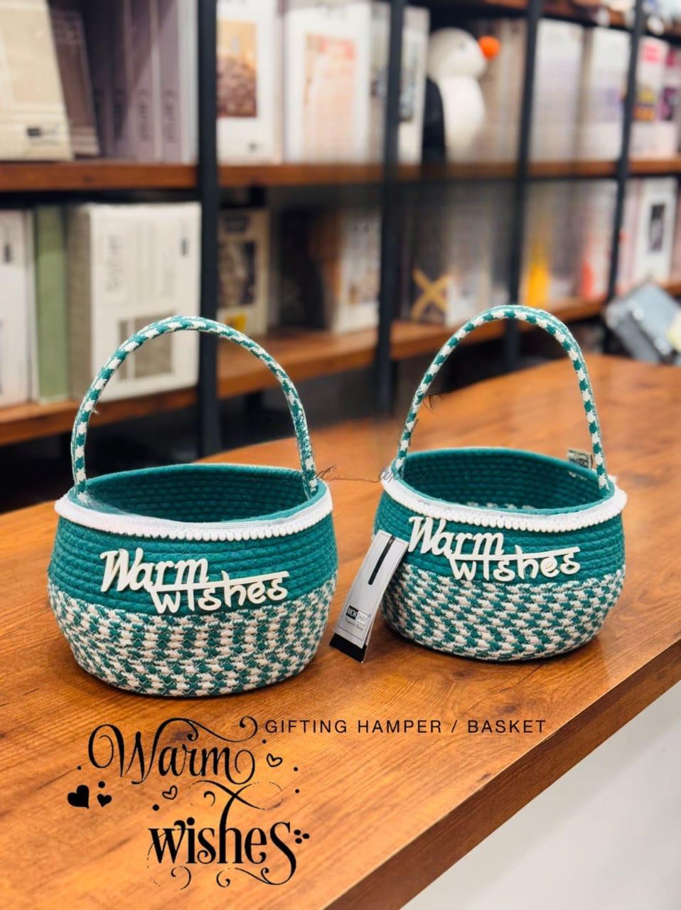 • 1PCS WARM WISHES POMPOM BOWL/OVAL SHAPE GIFTING HAMPER / BASKET WITH DOUBLE COLOUR BIG SIZE HANDLE { 7x5 INCHES } ?
