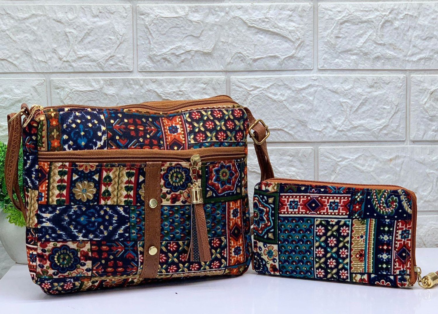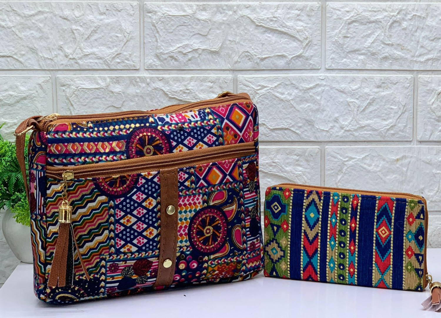 *Ikkat Sling & Wallet Combo For Women And Girls*